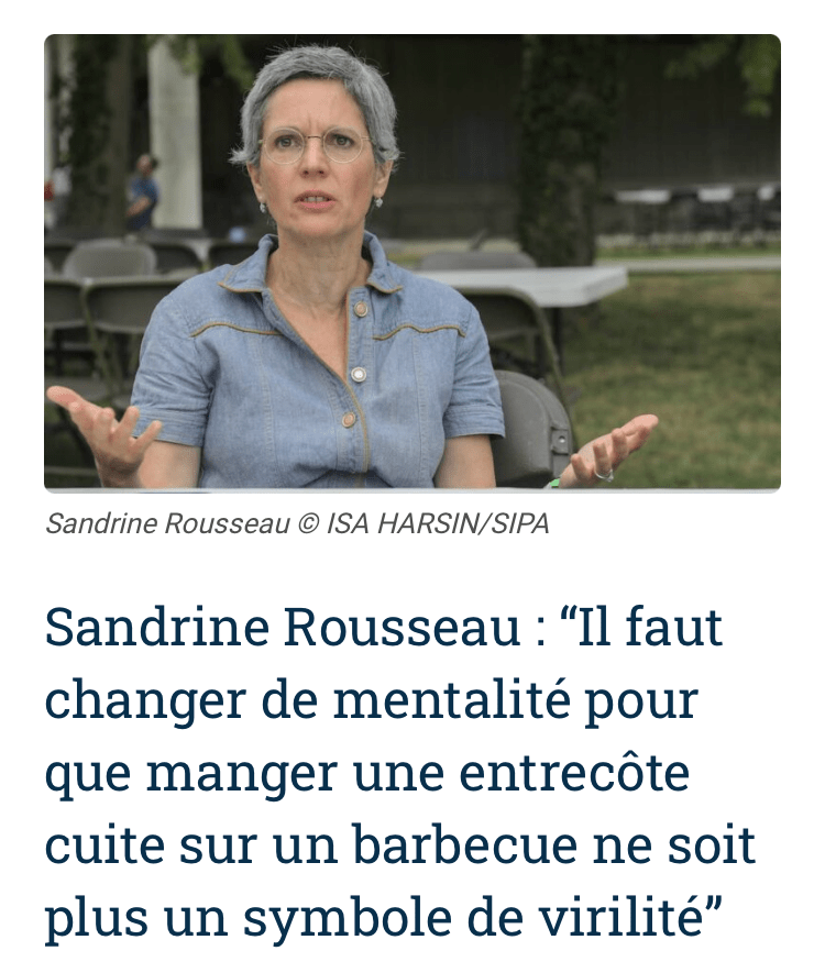Un T-bone au barbecue, on n’en pensait pas que du mal jusqu’à ce qu’une dignitaire écologiste y débusque le mâle en splendeur. Don Quichotte, lui aussi, était obsédé par le mal. Comme lui, notre égérie aura du mal à se faire une place parmi les Grands. Sa passion pour les sujets sans fond pourrait la desservir. Elle qui assure qu’il faut changer de mentalité car faire cuire un steak de vache au barbecue serait encore perçu comme un symbole de virilité en 2022. Elle ne voit pas le mal qu’il y aurait à faire griller des gambas ou des daurades, qui, elles, ne semblent pas porter le sceau infâme de la virilité. Dans cette confusion des genres, je me suis demandé pourquoi la viande au barbecue serait une manière d’être plus androgène qu’androgyne.