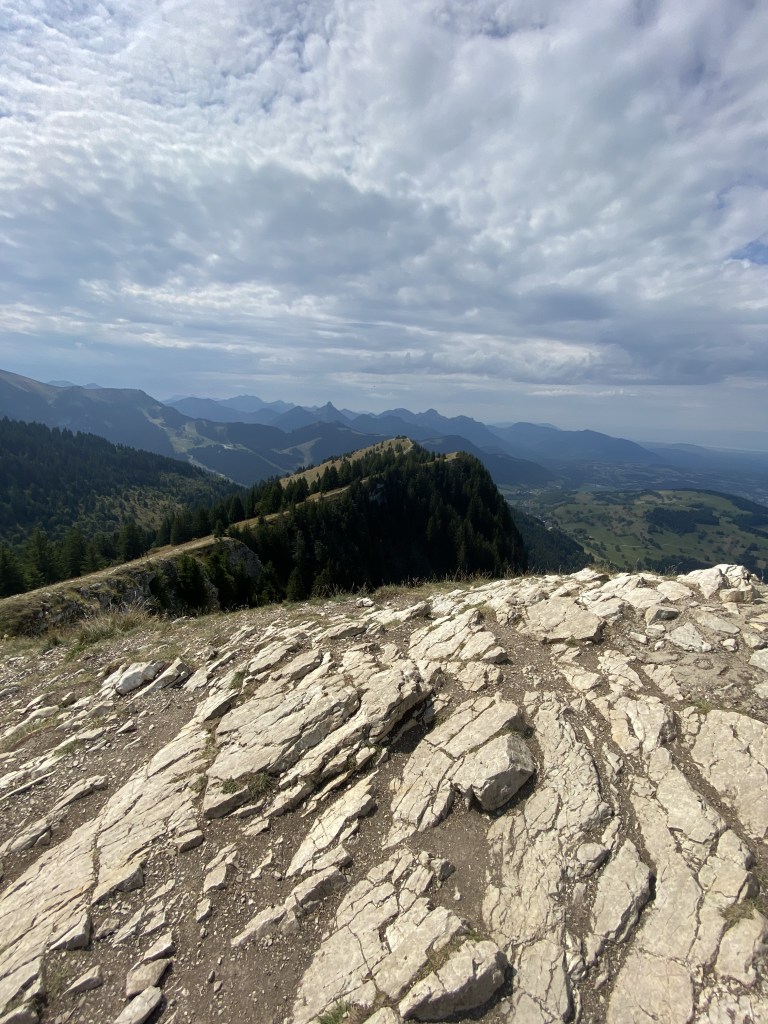 L’ascension jusqu’aux 1.600m de la montagne des Mémises est on ne peut plus simple par le télécabine. Le départ du GR n’est pas bien balisé, mais une fois découvert, le sentier ne nous demandera pas vraiment d’efforts intenses. Le plaisir ne viendra donc pas du niveau technique de la marche, mais de la magie des paysages. Nous sommes sur un escarpement de 1.200m en aplomb du lac, c’est absolument phénoménal.